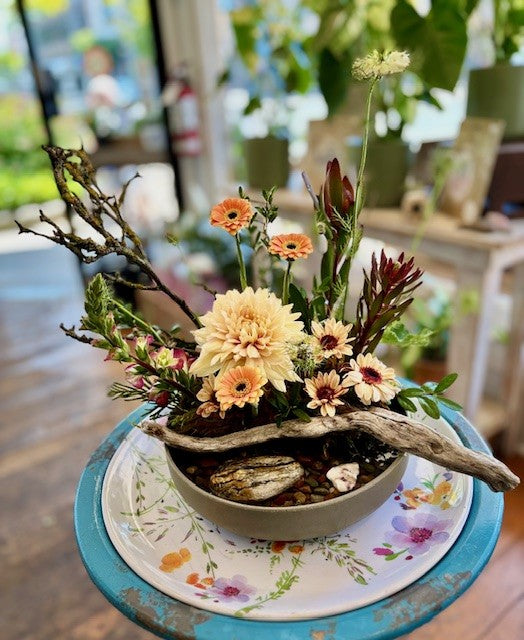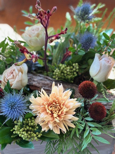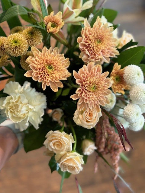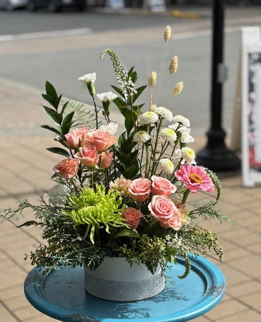 These arrangements are made using floral foam or chicken wire. This allows us to have more control over each individual flower.