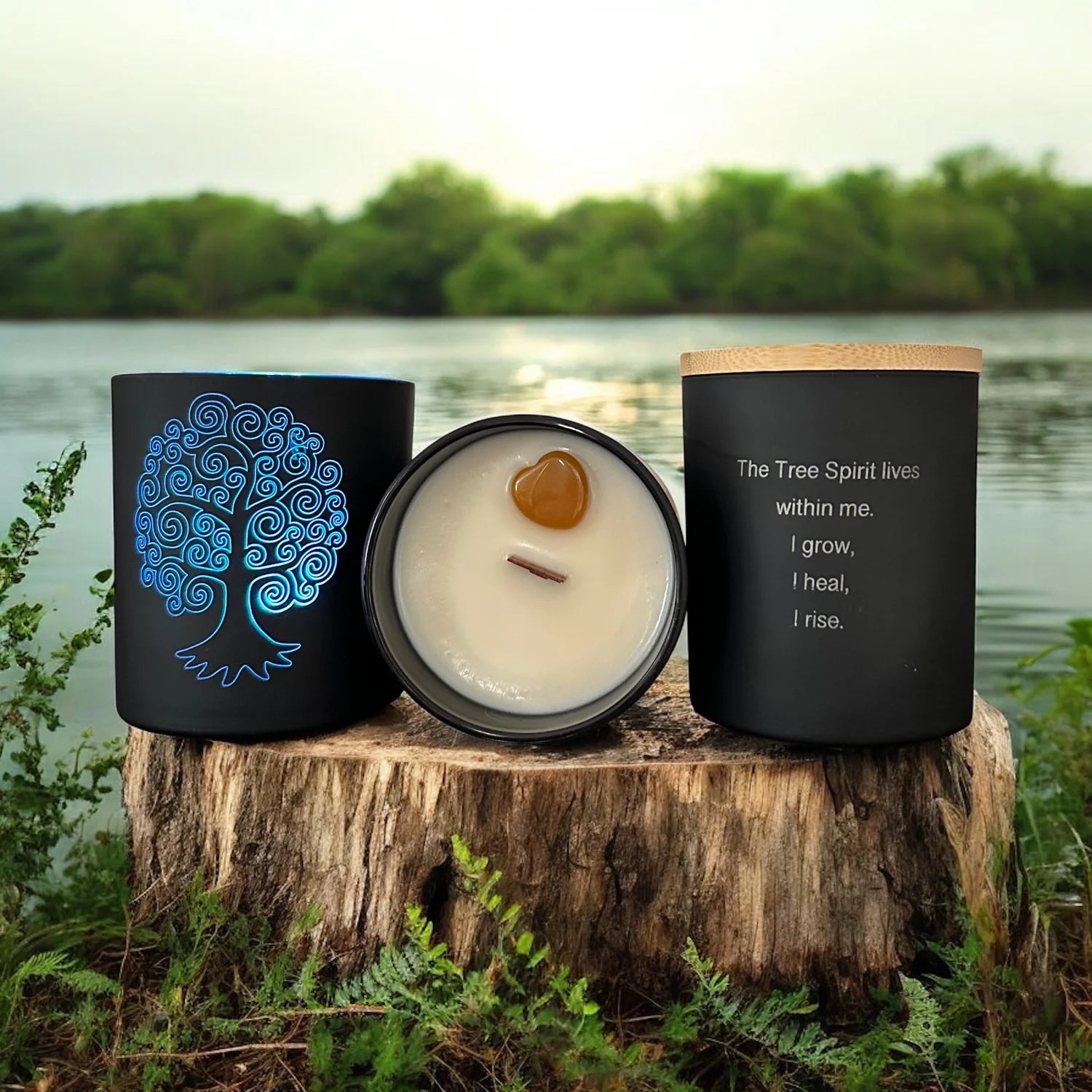 Laser-engraved jars, custom coasters, and fairy lights help make every candle a keepsake.
